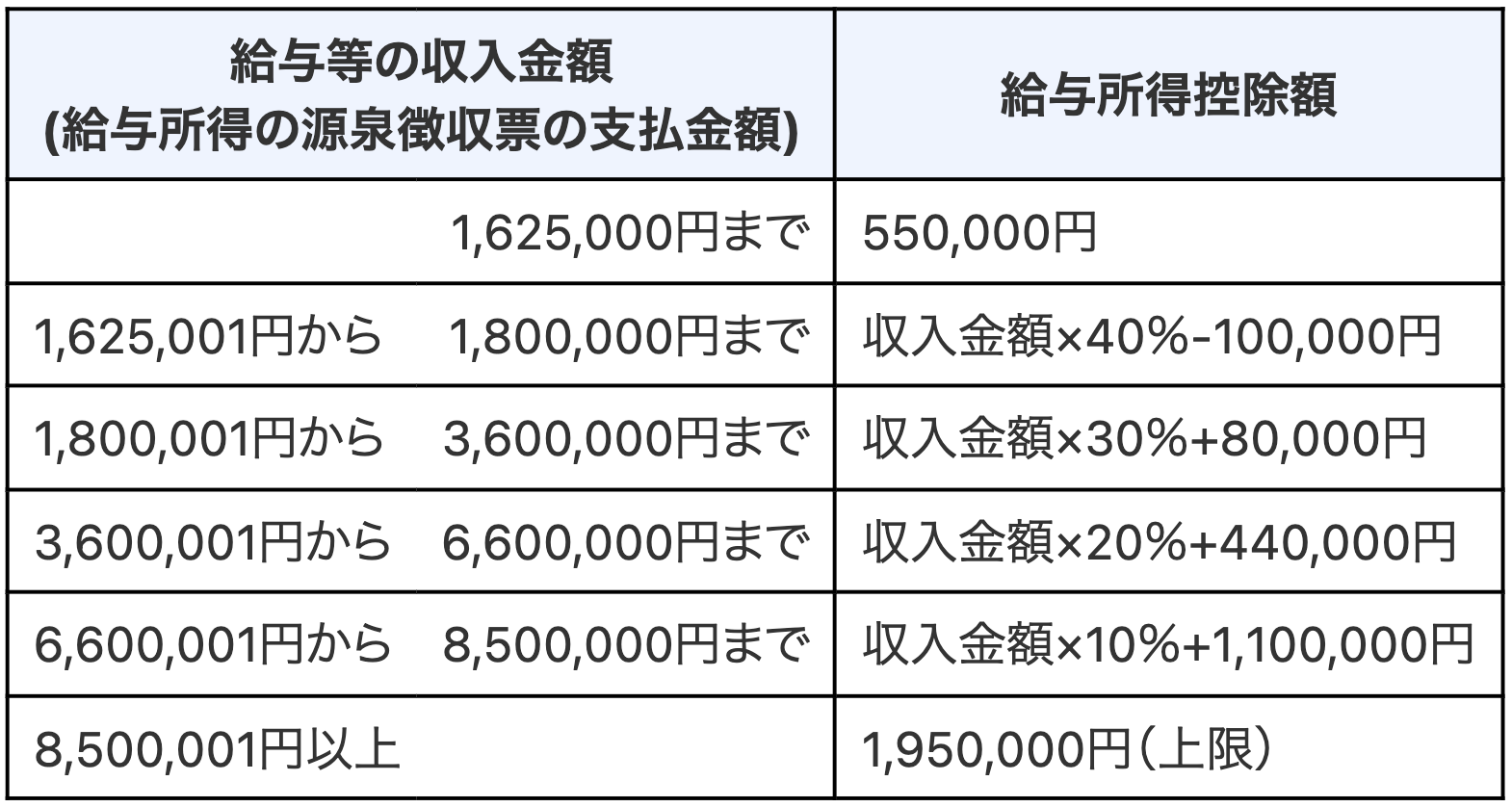 また給与所得控除は、以下のように収入に応じて控除額が変動する点にご留意ください。